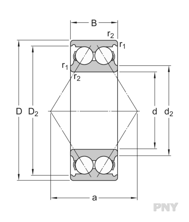 Двухрядный радиально-упорный шарикоподшипник PNY 3307 A