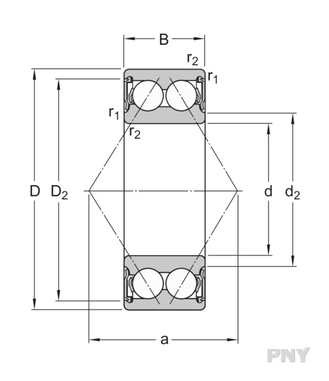 Двухрядный радиально-упорный шарикоподшипник с уплотнениями с обеих сторон PNY 3210 A-2RS1TN9/MT33