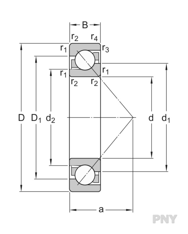 Однорядный радиально-упорный шарикоподшипник PNY 7305 BECBY