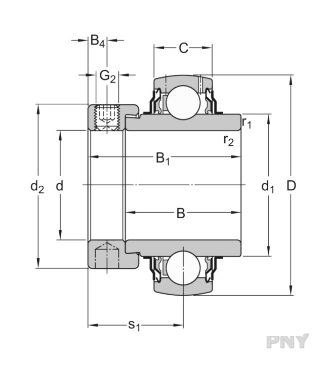 Корпусный подшипник с эксцентриковым стопорным кольцом и широким внутренним кольцом PNY YEL 206-2F
