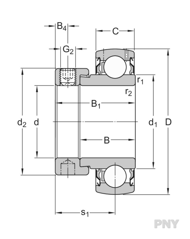 Корпусный подшипник с эксцентриковым стопорным кольцом и узким внутренним кольцом, тип PEER PNY YET 207
