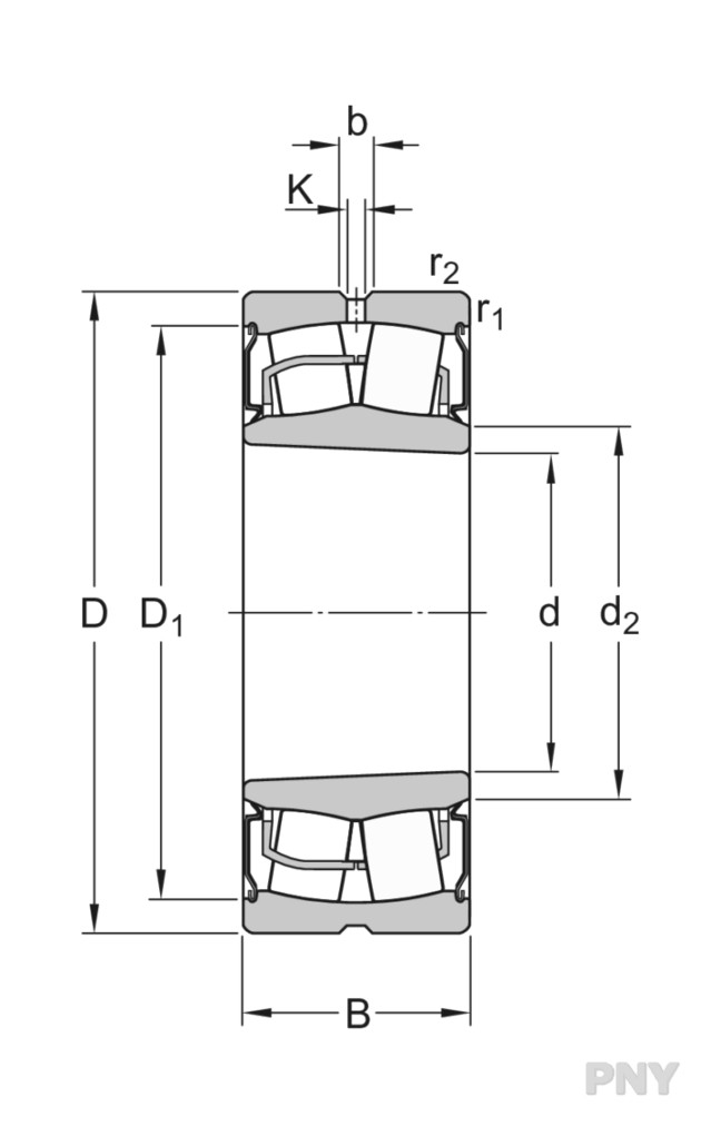 Сферический роликоподшипник с коническим отверстием, встроенным уплотнением и элементами для повторного смазывания PNY BS2-2212-2RSK/VT143