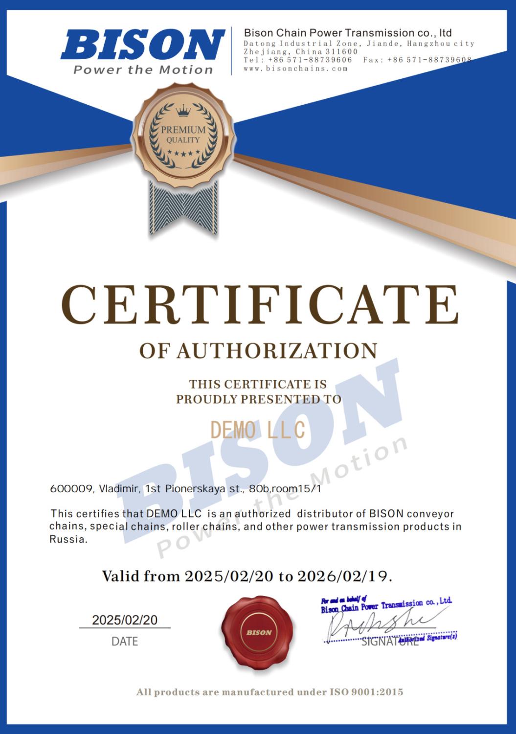 Сертификат официального дистрибьютора Taif Lubricants