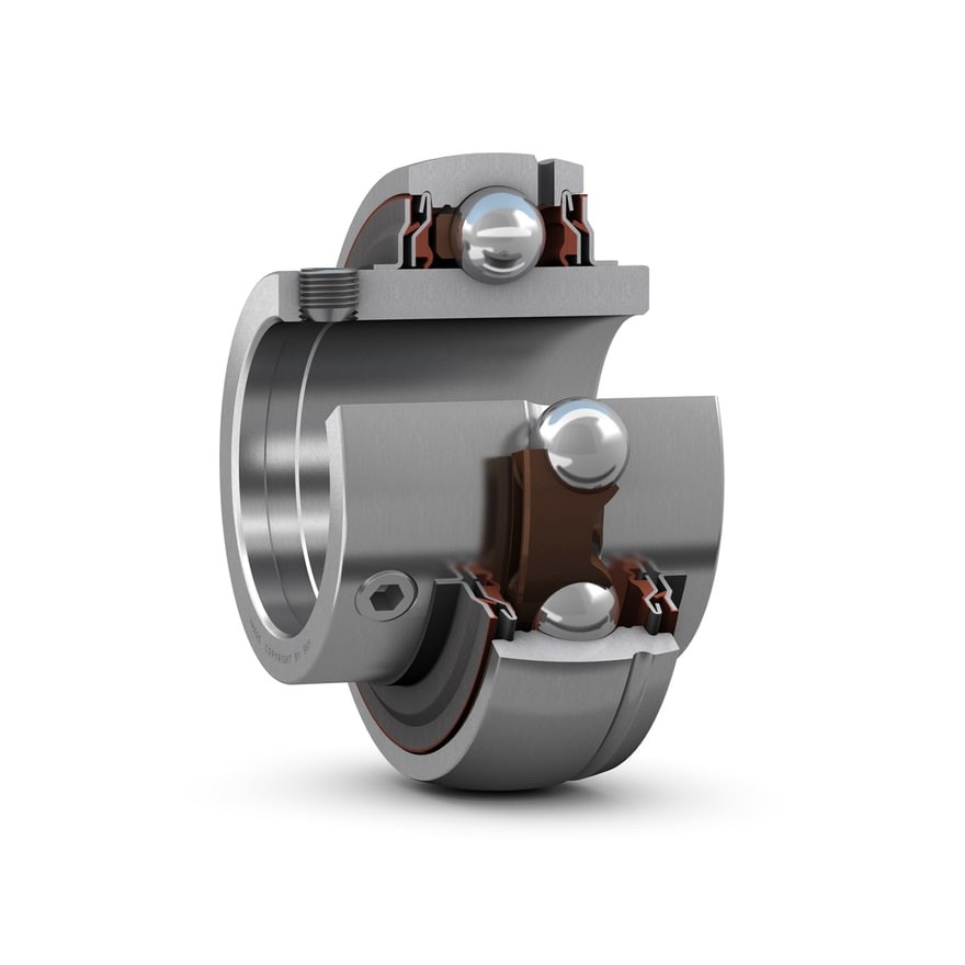 Корпусный подшипник с установочными винтами с фиксирующим и широким внутренним кольцом YAR 207-2RF/VE495
