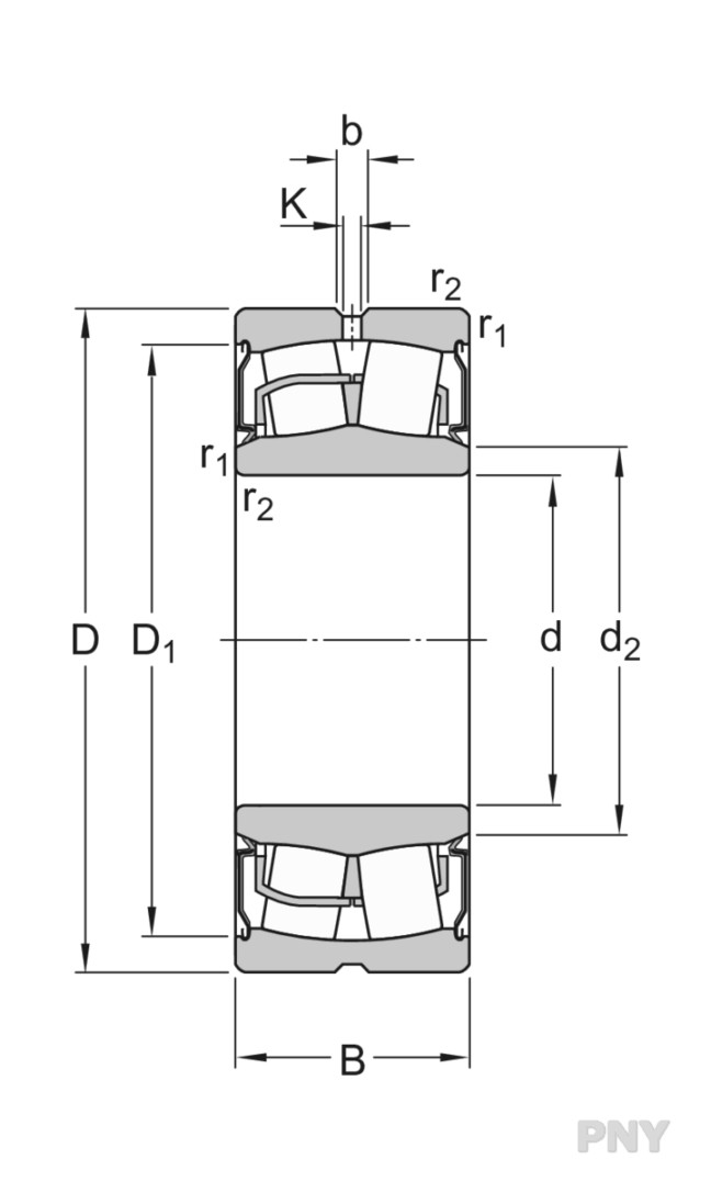 Сферический роликоподшипник с встроенным уплотнением и элементами для повторного смазывания PNY BS2-2207-2RS/VT143