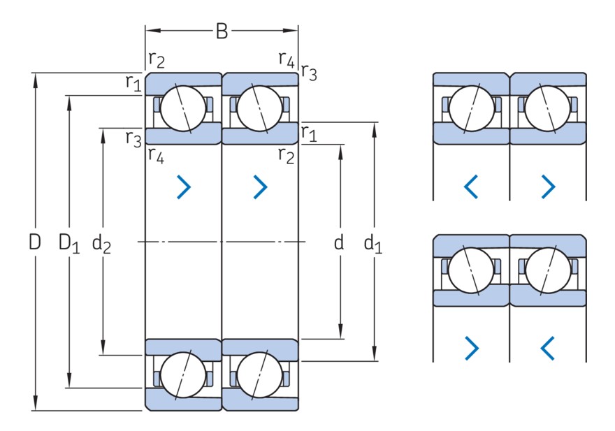 Согласованный комплект двух прецизионных высокоскоростных однорядных радиально-упорных шарикоподшипников типа E