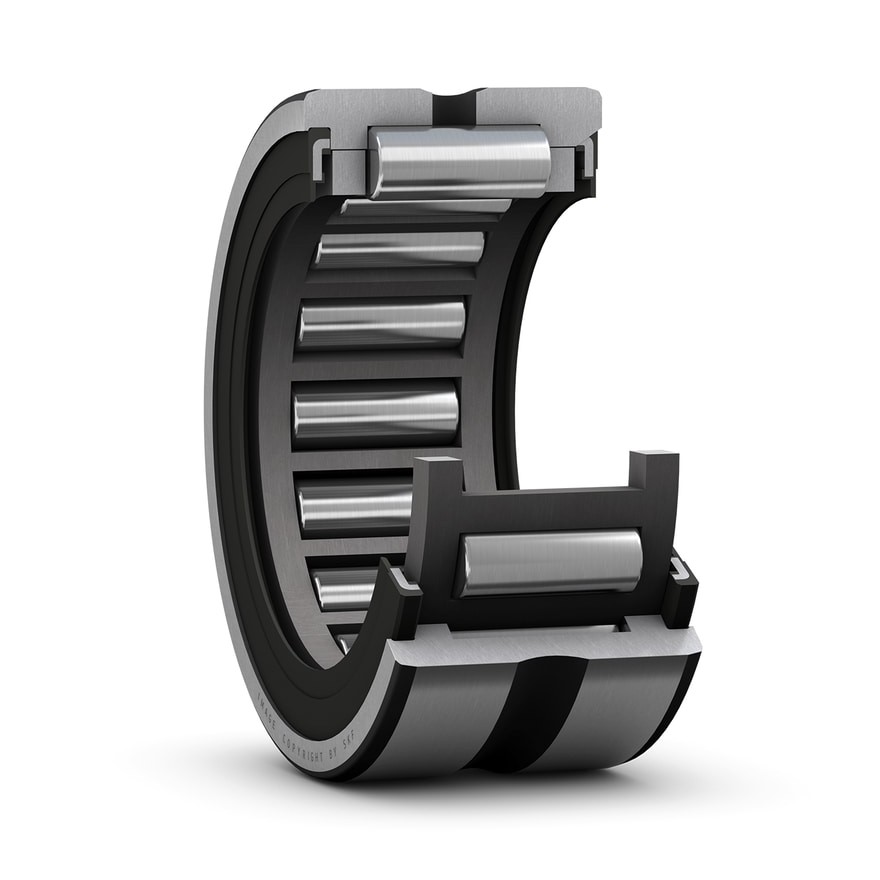 Однорядный игольчатый роликоподшипник с механически обработанными кольцами, с бортами и встроенным уплотнением, без внутреннего кольца