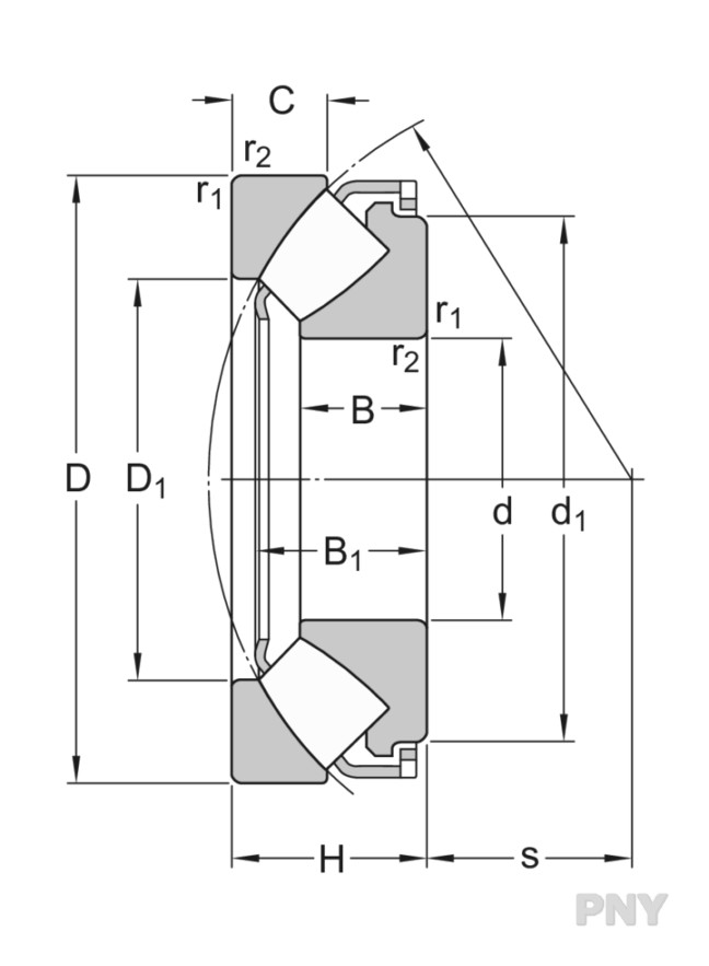 Упорный сферический роликоподшипник со штампованным стальным сепаратором PNY 29332 E